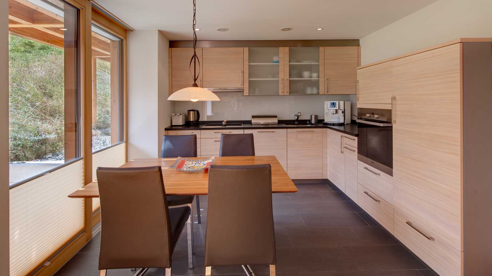 komplett ausgestattete Küche mit Umluft-Backofen, Geschirrspühlmaschine, Kaffeemaschine