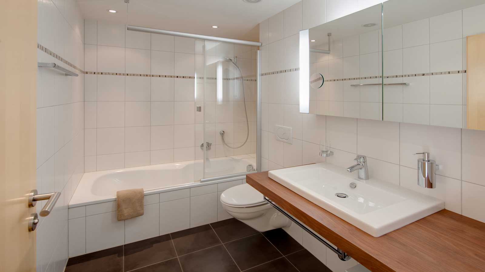 grosses Badezimmer mit Badewanne und WC